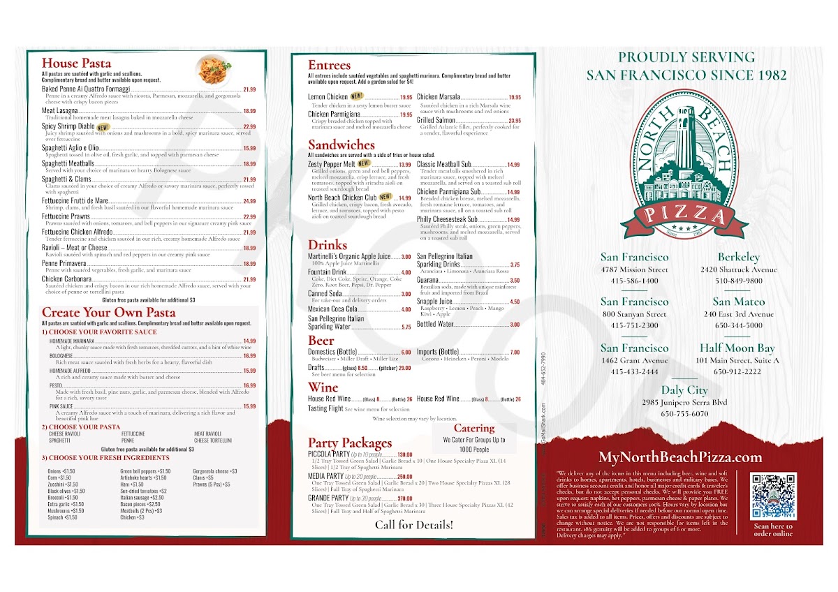 Welcome to North Beach Pizza, a beloved gem nestled in the heart of San Francisco! Known for its delicious, classic-style pizzas and hearty sandwiches, this spot is perfect for both casual dining and quick bites. Their menu features a range of offerings that cater to all tastes.
